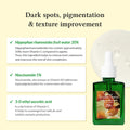 Seerumin teho perustuu 5 % niasiiniamidiin, 20 % C-vitamiinipitoiseen tyrnimarjauutteeseen (Hippophae rhamnoides) sekä 2 % vihreän teen lehtiveteen, jotka yhdessä kirkastavat ja rauhoittavat ihoa. Lisäksi 3-O-etyyliaskorbiinihappo, allantoiini ja adeniini tukevat ihon kimmoisuutta, kiinteyttä ja ikääntymisen merkkien ehkäisyä.