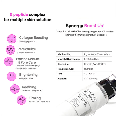 The 6 Peptide Skin Booster Serum is a serum enhanced with six peptides, which helps you achieve beautiful, moisturized skin. In addition to peptides, the serum contains niacinamide, amino acids and NAG, i.e. N-acetylglucosamine, which make the skin soft and improve skin tone and texture. Hyaluronic acid and allantoin moisturize and soothe the skin.