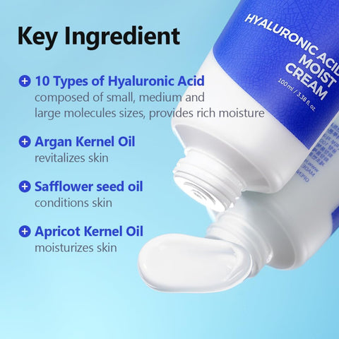 Aqua, Caprylic/ Capric Triglyceride, Shea Butter, Polyglyceryl-3 Methylglucose Distearate, Cetyl Alcohol, Glycereth-26, Glyceryl Stearate, Betaine, Behenyl Alcohol, Vinyl Dimethicone, Pentylene Glycol, Laminaria Japonica Extract, Eclipta Prostrata Leaf Extract, Oat Kernel Extract, Artichoke Leaf Extract, Apricot Seed Oil, Argan Kernel Oil, Safflower Seed Oil, Sodium Hyaluronate, Camellia Sinensis Leaf Water, Polyglyceryl-10 Laurate, Pentaerythrityl Distearate, Ammonium Acryloyldimethyltaurate/ VP Copolymer, Glyceryl Caprylate, Sodium Stearoyl Glutamate, Methylpropanediol, Fructooligosaccharides, Disodium EDTA, Beta-Glucan, Hydrolyzed Hyaluronic Acid, Polyquaternium-51, Butylene Glycol, Hydroxypropyltrimonium Hyaluronate, Dimethylsilanol Hyaluronate, Hydrolyzed Sodium Hyaluronate, Potassium Hyaluronate, Hyaluronic Acid, Sodium Hyaluronate Crosspolymer, Sodium Acetylated Hyaluronate, 1,2-Hexanediol, Hydroxyacetophenone, Glycerin, Hydrogenated Polydecene, Dipropylene Glycol, Cyclohexasiloxane, Hydrogenated Lecithin, Ethylhexylglycerin, Sodium Hyaluronate Dimethylsilanol, Ascorbyl Propyl Hyaluronate