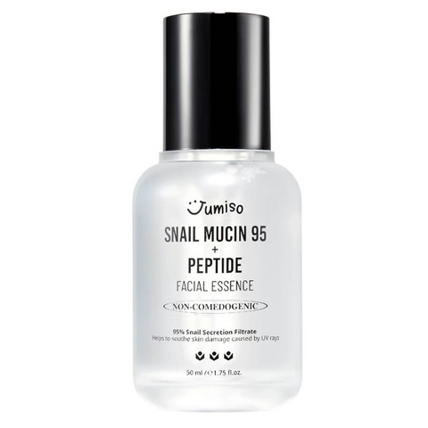 Jumiso Snail Mucin 95 + Peptide Facial Essence contains snail mucin and five different peptides that together improve skin texture, strengthen the skin barrier, and prevent and reduce the appearance of signs of aging. It helps the skin look firmer, more even, and softens fine lines.