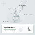 A serum that moisturizes effectively without a sticky feeling. Tea tree and hyaluronic acid together soothe irritated skin and control excessive sebum production.