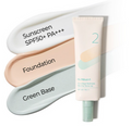 No.2 Goodbye Redness Derma Tone Up är en 3-i-1 produkt utvecklad för rodnad hud, som erbjuder solskyddsmedel, primer eller smink som används som sådan i samma produkt. Dessutom innehåller den hudvårdande och lugnande ingredienser, såsom extrakt av tea tree och gröna kameleontblad.