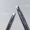 Borsten har två ändar som erbjuder olika användningssätt: den platta och rundade ändan möjliggör exakt applicering även på små områden, medan den täta och rundade änden är perfekt för att tona ut och uppnå ett mjukt resultat. Borsten fungerar utmärkt för applicering av ögonskugga, läpprodukter, eyeliner och concealer.